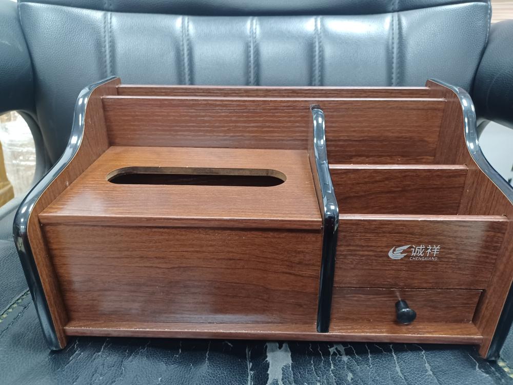 علبة خشبية ممتازة للمكتب مقسمة للورق والمناديل والأقلام بدرج