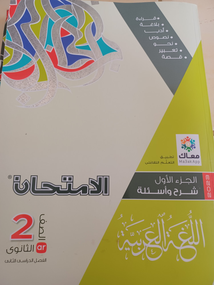 الامتحان عربي ثانية ثانوي ترم ثاني 2023