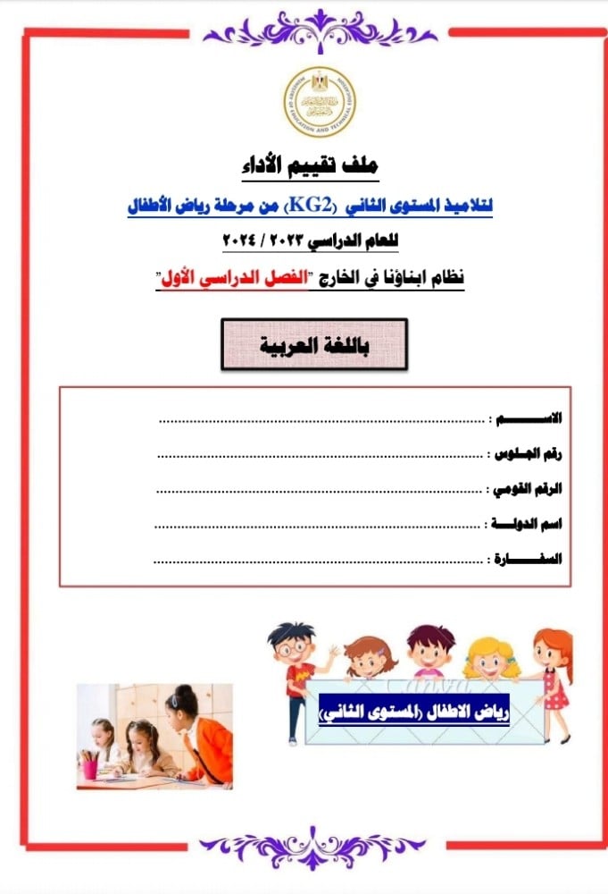 ملف تقييم الأداء (الأنشطة) كجي تو عربي ترم أول 2024